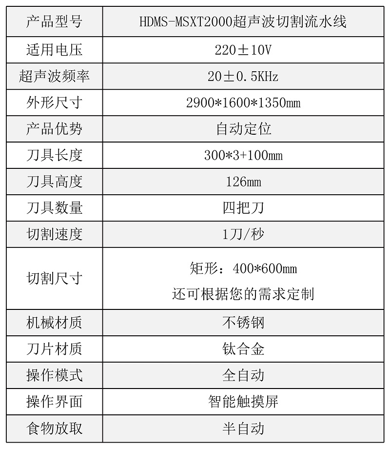 該設(shè)備配備單把超聲波刀片,可切圓形(只限一個(gè)圓蛋糕),也可切方形 |